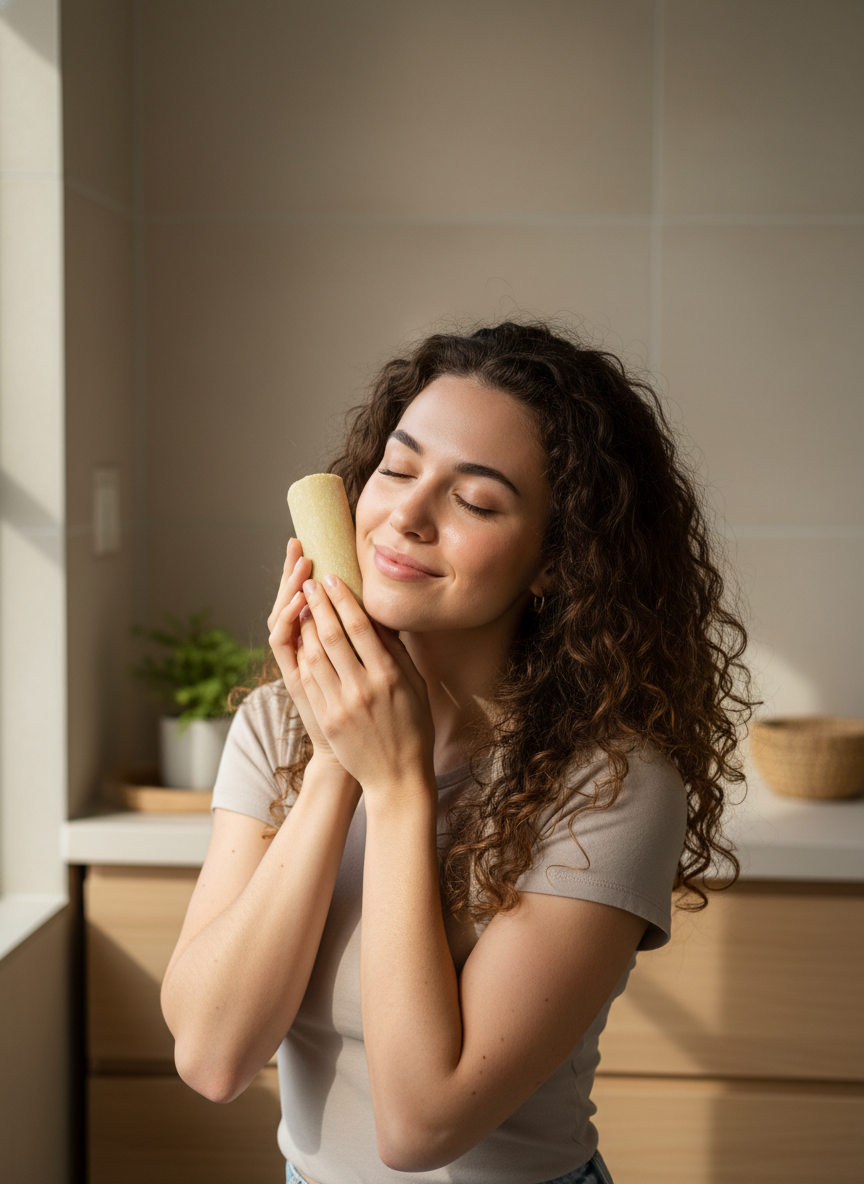 Tu peux aussi l’utiliser sur le visage ou les zones irritées en masque doux.